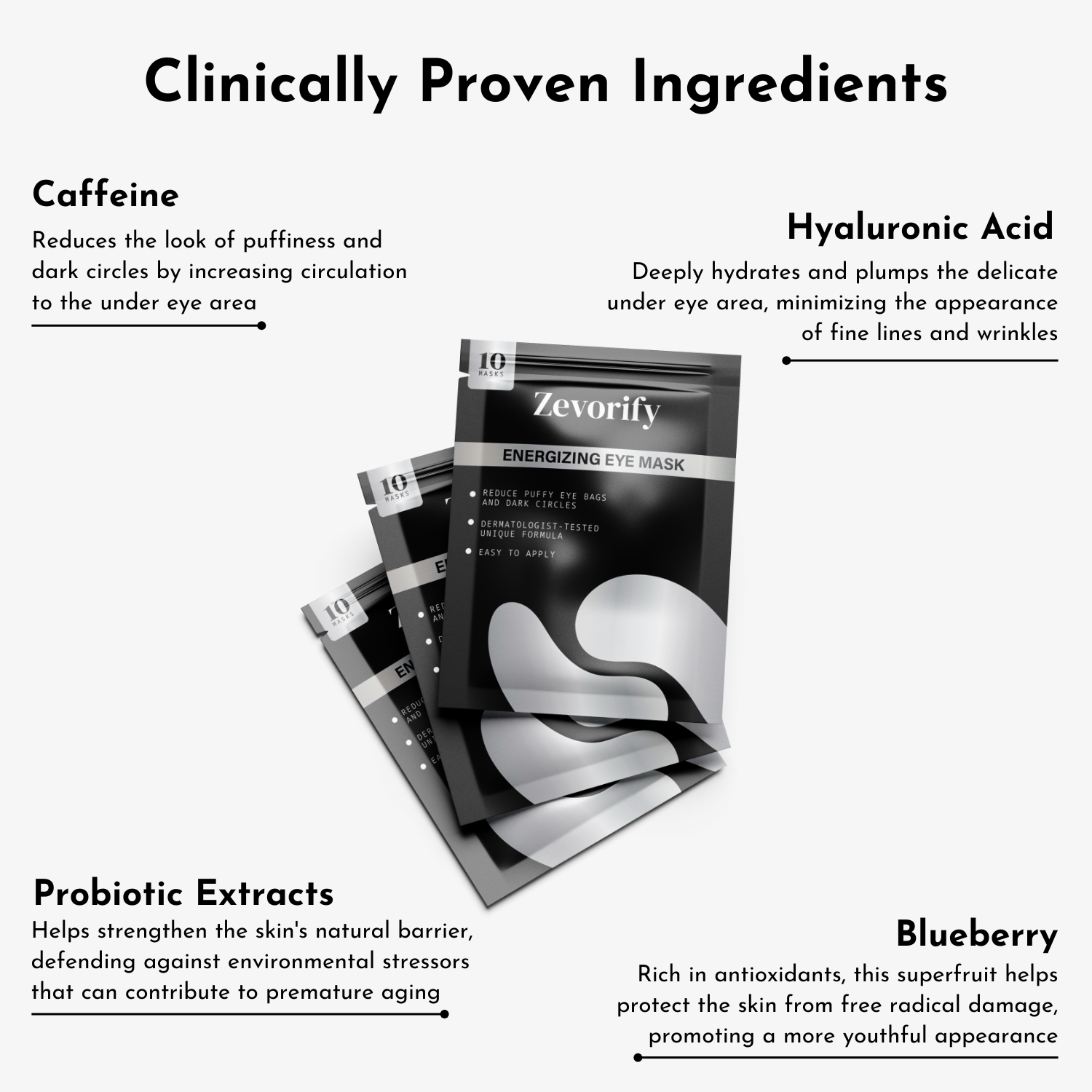 We use scientifically PROVEN and clinically BACKED ingredients to help fight against eye bags no matter your skin type or how old you are.